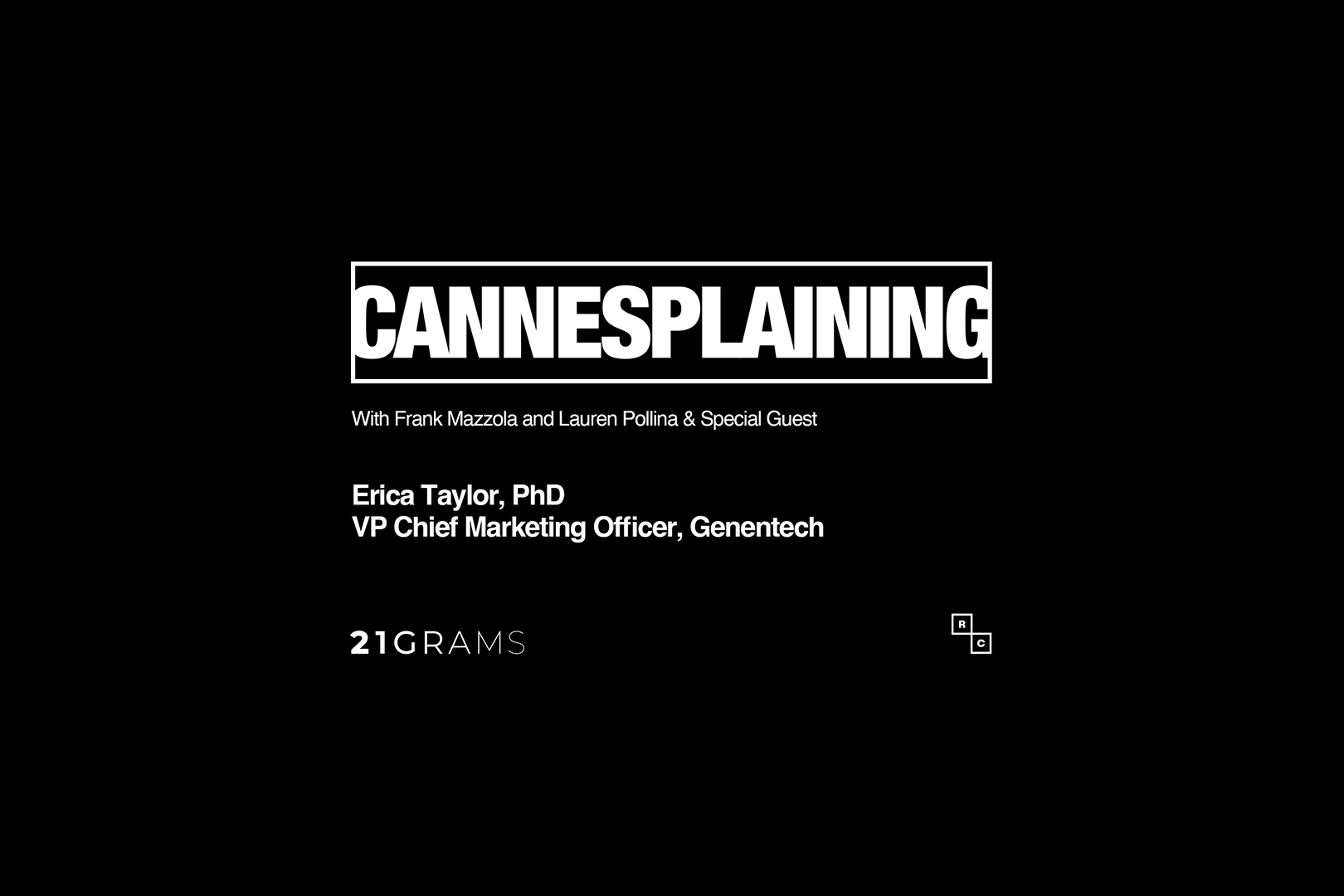Live from the 2024 Cannes Lions International Festival of Creativity, join us as we explore the intersection of creativity, marketing and healthcare during our latest Cannesplaining Healthcare podcast episode featuring Genentech Chief Marketing Officer (CMO) Dr. Erica Taylor, 21GRAMS Managing Founder & Real Chemistry Chief Creative Officer Frank Mazzola, and 21GRAMS Executive Creative Director Lauren Pollina. Discover how Genentech is modernizing marketing in the pharmaceutical industry and gain insights into the importance of creativity, the challenge of incorporating levity into health marketing and the value of early regulatory involvement in marketing campaigns. Learn from Dr. Erica Taylor's unique journey to her role as CMO and explore the evolving nature of marketing in healthcare.
