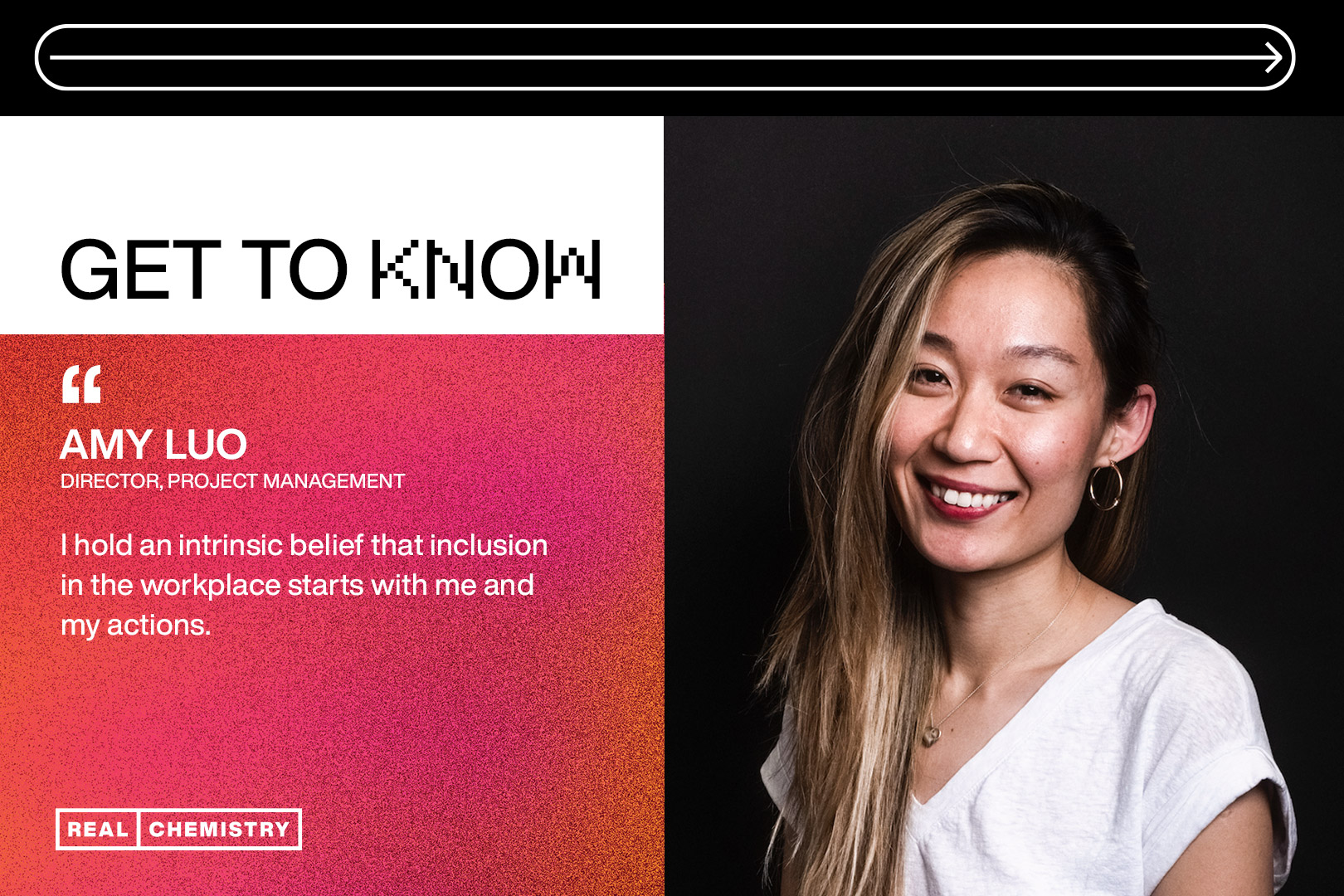 As a leader at Real Chemistry, I champion all types of diversity. I’m grateful to have finally found my voice and balance, as I hold an intrinsic belief that inclusion in the workplace starts with me and my actions. I proactively ask for diverse benches of candidates to recruit and ensure that we as leaders are always creating a space for inclusion in our workplace. Soon, I hope to see more diverse talented teammates come through our doors. To all the creative souls I have yet to meet, sharpen your resumes because we’re hiring! And to my managers at Real Chemistry and my many mentors here and beyond: thank you for your support, and let’s get to work. There’s more to be done.