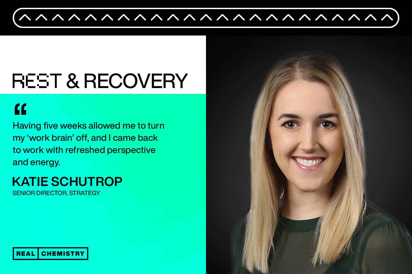 What I love most about this amazing perk is that Real Chemistry encourages employees to truly log off and step away from the work. While it took a few days, I found having the room of five whole weeks really did allow me to turn my “work brain” off and focus on other areas of my life that are important to me. As a result, I was able to come back to work with a refreshed perspective and energy to continue great work with my colleagues and clients.